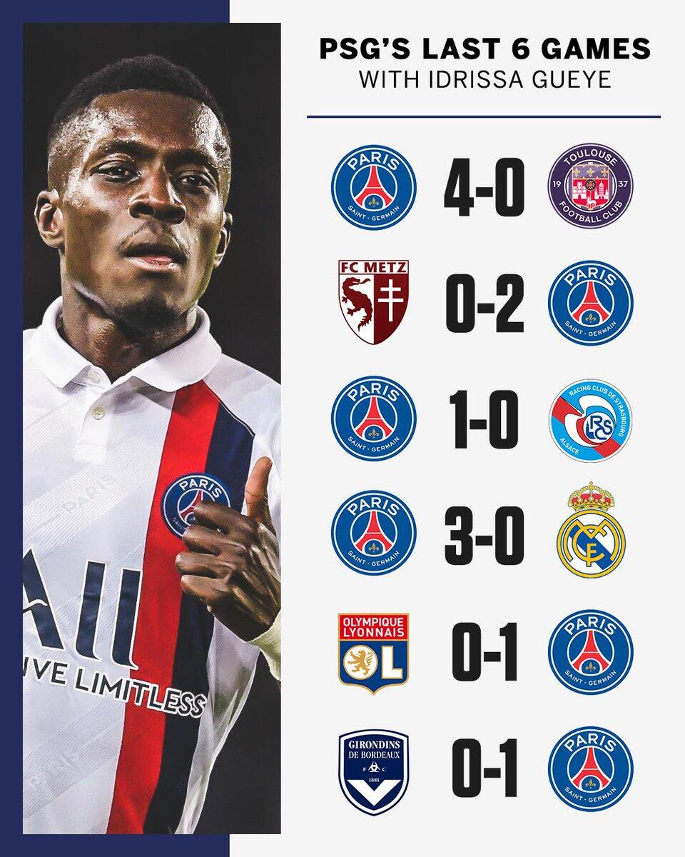 这6场比赛的对手分别是图卢兹(4-0)、梅斯(2-0)、斯特拉斯堡(1-0)、皇马(3-0)、里昂(1-0)和波尔多(1-0),这从侧面证明了盖耶在巴黎防守体系中发挥的重要作用。