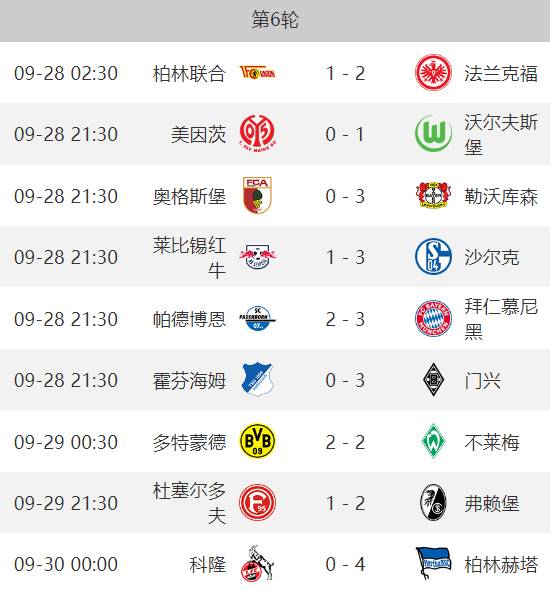 直播吧9月30日讯 德甲第六轮出现奇景,九场比赛里主队无一获胜,仅仅取得1平8负的成绩。