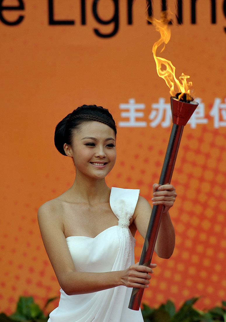 康辰晨微笑着举起采火棒,在短暂的展示后,她将采火棒交给了广东省省长黄华华。黄华华随后点燃了火种盒。三名火种护卫之后又用火种盒引燃了火种灯,这也意味着亚运火种最终顺利采集完成。