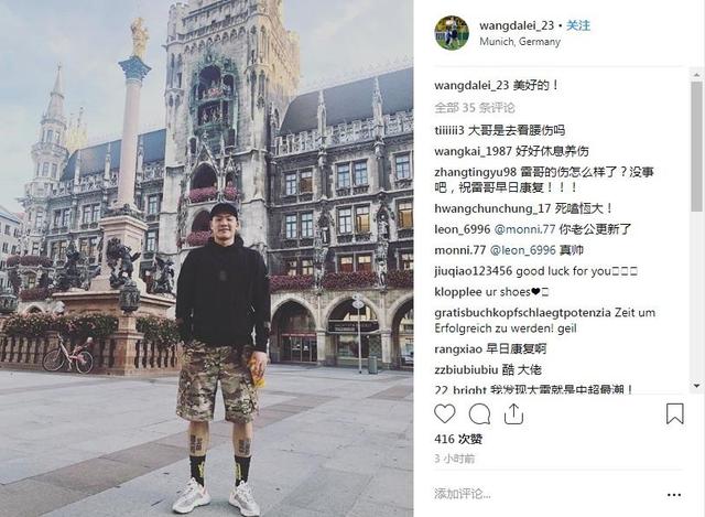 王大雷在个人社交平台上晒出了一张照片,定位则是在德国慕尼黑。据悉,他在此前的国足集训中腰部受伤,正因为如此,国家队又重新征召了天津权健的门将张鹭。