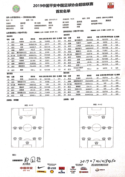 大众网·海报新闻济南7月21日讯(记者 亓翔)今晚7点35分,中超第十九轮山东鲁能在主场迎战深圳佳兆业。双方在赛前刚刚公布了首发名单,鲁能方面佩莱格德斯继续领衔,金敬道、蒿俊闵替补,费莱尼解禁回归,并未进行大范围的轮休。