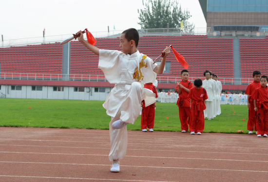 传统武术作为第一个展示节目,由雅明峰武道馆的小队员们进行表演。他们为大家展示了石景山区非物质文化遗产项目—少林八法的拳法、基本功及器械。