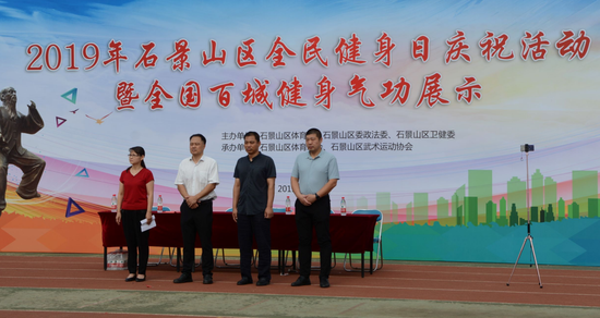 本次活动由石景山区体育局、石景山区政法委、石景山区卫健委主办;石景山区体育总会、石景山区武术运动协会承办。石景山区体育局局长李劲挺,石景山区委政法委副书记徐伟超,石景山区卫健委副主任杨纪峰,石景山区体育局副局长闫淑会出席了本次活动。