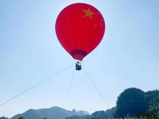 10月30日上午,2019国际山地旅游暨户外运动大会于万峰林景区举行开幕庆典,开幕现场热气球再次精彩亮相。2019年是中华人民共和国70周年华诞,大会开幕式以国旗热气球升空的形式为祖国献礼,在宣布开幕奏国歌升国旗的同时,以国旗形象球为焦点,10具热气球腾空而起,冉冉起飞,系留于万峰林上空,为祖国70周年华诞献上祝福,共祝祖国繁荣富强。