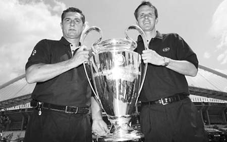 ▲前AC米兰球员马萨罗和前利物浦球员哈曼为冠军杯助阵。