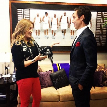 2012年在迎接纳什的发布会前,珍妮-巴斯与纳什亲切交谈