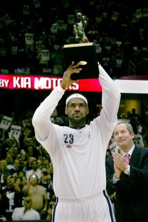 2008-09赛季,勒布朗以28.4分7.6篮板7.2助攻首夺常规赛MVP,成为2001年艾弗森之后首位诞生在东部的MVP,同时帮助骑士轰下66胜16负的队史最佳战绩。