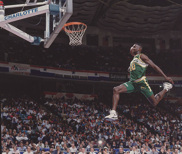 1991年夏洛特全明星赛,超音速前锋肖恩-坎普在扣篮大赛中滑翔暴扣。尽管坎普6次入选全明星,而且三次参加扣篮大赛,但是他从未赢得过扣篮大赛的冠军。1991年,他输给了波士顿的迪-布朗。